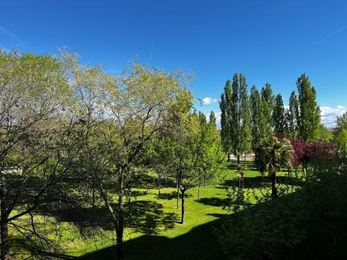 Set in a peaceful location within San Miguel Park. The hotel has free Wi-Fi. Rooms at the LOGROÑO PARQUE feature beautiful views over the park. All rooms have air conditioning, heating and satellite TV and private bathroom. A buffet breakfast is served, including fresh fruit, pastries and cold meats. The historic centre of Logroño is 2 km away and has attractions, such as La Redonda Cathedral and the Revellín Wall.