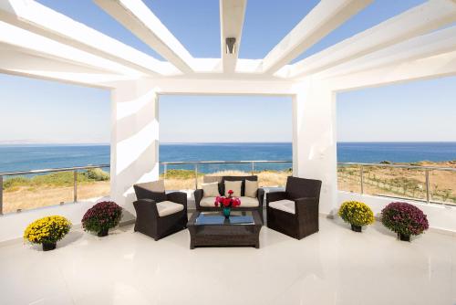 Die Olga Luxury Beach Front Villas heißen Sie mit einem eigenen Strandbereich im Dorf Lakhaniá willkommen. Freuen Sie sich auf einen üppigen Garten und einen Außenpool mit einer Sonnenterrasse. WLAN nutzen Sie hier in allen Bereichen kostenfrei. Die geräumige, modern gestaltete Villa bietet Ihnen Aussicht auf die Ägäis sowie ein Wohnzimmer mit einem Flachbild-Sat-TV und einem DVD-Player. Die offen geschnittene Küche verfügt über Kochgelegenheiten, einen Kühlschrank und einen Geschirrspüler. Eine Whirlpool-Badewanne, eine Klimaanlage und eine Waschmaschine runden den Komfort ab. Sie profitieren in den Olga Luxury Beach Front Villas darüber hinaus von einem Whirlpool, einem Garten und einer Terrasse. Sie können gern auch in der Gemeinschaftslounge verweilen. Der Golfclub Rhodos ist 60 km entfernt. Vom internationalen Flughafen Rhodos „Diagoras“ trennen Sie 70 km. Die Privatparkplätze an der Unterkunft stehen Ihnen kostenfrei zur Verfügung.