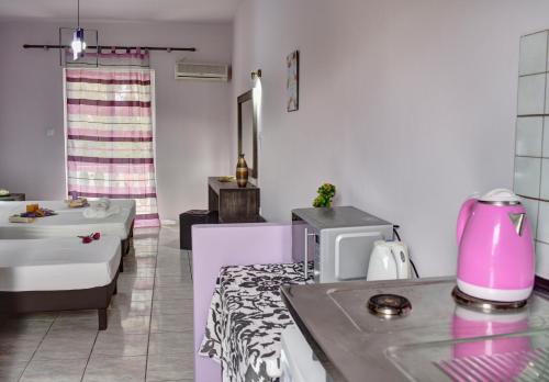 Die Splash II Studios & Pool Access erwarten Sie mit Gartenblick, kostenfreiem WLAN und kostenfreien Privatparkplätzen in Laganas, 1,1 km vom Strand Laganas entfernt. Jede Unterkunft verfügt über eine Terrasse mit Bergblick, einen Flachbild-TV, einen Essbereich, eine gut ausgestattete Küche und ein eigenes Bad mit einer Dusche, einem Haartrockner und kostenlosen Pflegeprodukten. Ein Backofen, eine Mikrowelle, ein Toaster, eine Kaffeemaschine und ein Wasserkocher sind ebenfalls vorhanden. Der Bauernhof bietet einen Picknickbereich. Die Splash II Studios & Pool Access bieten einen Fahrradverleih und eine Autovermietung. Der Strand Kalamaki liegt 2,2 km von der Unterkunft entfernt und die Kirche Agios Dionysios erreichen Sie nach 6,9 km. Der nächstgelegene Flughafen ist der 3 km von den Splash II Studios & Pool Access entfernte internationale Flughafen Zakynthos. Die Unterkunft bietet einen kostenpflichtigen Flughafentransfer.