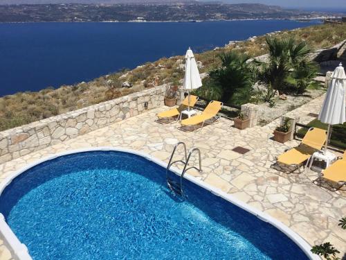 Die Villa Dilia befindet sich auf der Spitze eines Hügels in Megala Horafia, 15 km von Chania und 35 km von Rethymno entfernt. Die Unterkunft mit Blick auf die Bucht von Souda umfasst 5 Schlafzimmer. Zur Ausstattung gehören ein Essbereich und eine Küche mit Geschirrspüler, einem Backofen und einer Mikrowelle. Ein Flachbild-Sat-TV, ein DVD-Player sowie ein CD-Player sorgen für Unterhaltung. Die Villa Dilia verfügt außerdem über einen Außenpool und einen Kamin. Freuen Sie sich auch auf ein Begrüßungspaket mit kretischem Wein und Olivenöl. Ein Minimarkt und verschiedene Restaurants befinden sich in 1 km Entfernung. Vom Flughafen Chania trennen Sie 22 km. Den mit einer blauen Flagge ausgezeichnete Strand von Kalives und den Hafen von Souda erreichen Sie innerhalb von 8 km.