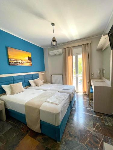 Das Aphrodite Vatera Hotel zählt derzeit zu den attraktivsten und modernsten und Hotels auf Lesbos. Es liegt direkt am Strand an der Küste von Vatera, dem beeindruckendsten Strand von Lesbos mit über 10 km Länge. Die klimatisierten Zimmer sind sehr gut eingerichtet und genießen einen Blick aufs Meer oder die Berge. Das hoteleigene Restaurant serviert Ihnen köstliche traditionelle Gerichte. Ein beliebter Ort für Genießer ist auch die wunderbare Taverne des Hotels, die sich im Freien am Meer befindet.