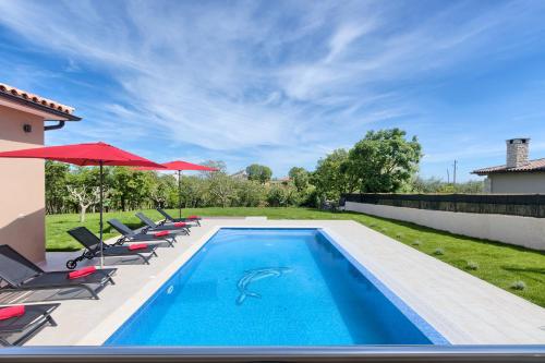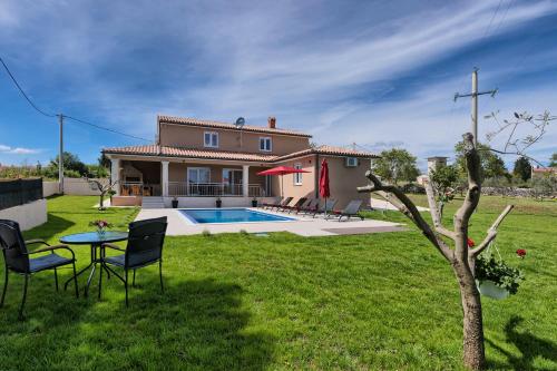 Die Villa Vesna in Divšići bietet Ihnen Unterkünfte mit einem eigenen Pool, Gartenblick und einer Terrasse. Die Villa mit Poolblick liegt 31 km von Rabac entfernt. Diese klimatisierte Villa verfügt über 3 Schlafzimmer, einen Flachbild-Sat-TV, einen Essbereich und eine Küche mit einem Geschirrspüler und einer Mikrowelle. Die Villa verfügt über eine Terrasse. Schwimmen Sie im Außenpool, unternehmen Sie eine Radtour oder entspannen Sie im Garten und nutzen Sie die Grillmöglichkeiten. Rovinj liegt 34 km von der Villa Vesna entfernt und Pula erreichen Sie nach 20 km. Der nächste Flughafen ist der 10 km von der Unterkunft entfernte Flughafen Pula.