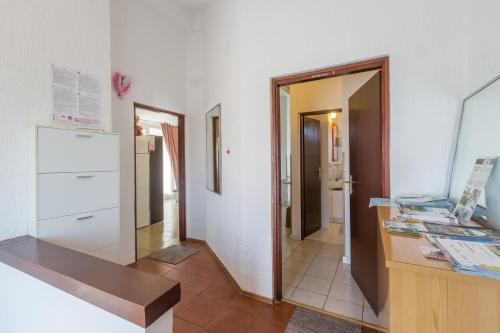 Das Apartment Karigador 2534b erwartet Sie mit einer Terrasse in Karigador in Istrien. Die klimatisierte Unterkunft liegt 500 m vom Strand Dalja entfernt. Sie profitieren von Privatparkplätzen an der Unterkunft und kostenfreiem WLAN. Das Apartment mit 2 Schlafzimmern verfügt über ein Wohnzimmer mit Sat-TV, eine voll ausgestattete Küche mit einem Kühlschrank und einem Geschirrspüler sowie 1 Bad mit einer Dusche. Der Strand Šćunac liegt 1,9 km vom Apartment entfernt und den Strand Canova Park Umag erreichen Sie nach 2,4 km. Vom nächstgelegenen Flughafen Portorož trennen Sie 19 km.