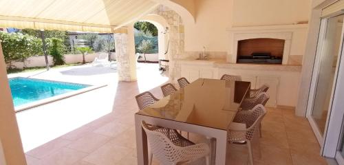 Die Villa Martina in Pinezici bietet klimatisierte Unterkünfte mit einem eigenen Pool, Bergblick und einer Terrasse. Diese Unterkunft am Strand bietet Zugang zu einem Balkon, kostenfreie Privatparkplätze und kostenfreies WLAN. Die Villa mit einer Terrasse und Meerblick verfügt über 5 Schlafzimmer, ein Wohnzimmer, einen Flachbild-TV, eine ausgestattete Küche mit einem Geschirrspüler und einem Backofen sowie 4 Badezimmer mit einer ebenerdigen Dusche. Handtücher und Bettwäsche werden in der Villa gestellt. Die Villa bietet 5-Sterne-Unterkünfte mit einem Fitnesscenter und einem Kinderspielplatz. Nach einem Tag voller Windsurfen, Tauchen oder Angeln können Sie im Garten oder in der Gemeinschaftslounge entspannen. Der Strand Jert liegt weniger als 1 km von der Villa Martina entfernt und den Strand Better Mocca erreichen Sie nach 11 Gehminuten. Der nächstgelegene Flughafen ist der 25 km von der Unterkunft entfernte Flughafen Rijeka.