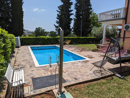 Nur 2 km vom Stadtzentrum von Umag entfernt erwarten Sie diese Apartments mit einem Balkon mit malerischer Aussicht. Freuen Sie sich auf einen Pool mit einer Terrasse und Sonnenliegen. Profitieren Sie auch von den kostenlosen Parkplätzen am Hotel. Jedes Apartment in der Villa Rosa verfügt über eine Küche mit Mikrowelle und Geschirrspüler sowie einen Essbereich und eine Sitzecke. Auch ein Sat-TV ist vorhanden. Der Ferienort Sol Stella Maris liegt in der Nähe. Dort sind zahlreiche Aktivitäten und Unterhaltungsmöglichkeiten zu finden. In den Villa Rosa Apartments wohnen Sie nur 2 km vom Strand entfernt.