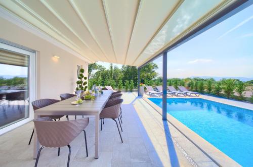 Das Holiday Home Elegant mit Poolblick bietet Unterkünfte mit einer Terrasse und einem Balkon, etwa 9,3 km vom Franziskanerkloster Kosljun entfernt. Diese Villa verfügt über einen eigenen Pool, einen Garten, Grillmöglichkeiten, kostenfreies WLAN und kostenfreie Privatparkplätze. Die klimatisierte Villa umfasst 3 Schlafzimmer, ein Wohnzimmer, eine voll ausgestattete Küche mit einem Kühlschrank und einer Kaffeemaschine sowie 3 Badezimmer mit einem Bidet und einer Dusche. Ein Flachbild-Sat-TV und eine Spielekonsole sind ebenfalls vorhanden. Der Yachthafen von Punat liegt 12 km von der Villa entfernt und die Burg Trsat erreichen Sie nach 48 km. Der nächstgelegene Flughafen ist der 25 km vom Holiday Home Elegant entfernte Flughafen Rijeka.