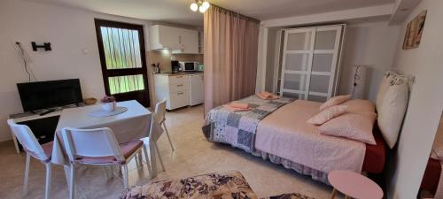 Das App Maria 3 mit Gartenblick bietet Unterkünfte mit einer Terrasse und einem Wasserkocher, etwa 700 m vom Strand Sol Polynesia entfernt. Die klimatisierte Unterkunft liegt 60 m vom Strand Zambratija entfernt. Sie profitieren von kostenfreiem WLAN und Privatparkplätzen an der Unterkunft. Das Apartment mit Terrasse und Meerblick verfügt über 1 Schlafzimmer, ein Wohnzimmer, einen Flachbild-TV, eine ausgestattete Küche mit einem Kühlschrank und einer Mikrowelle sowie 1 Bad mit einer Dusche. Handtücher und Bettwäsche werden im Apartment gestellt. Freuen Sie sich auf einen Garten mit Grillmöglichkeiten. In der Nähe können Sie tauchen und angeln. Der Strand Katoro liegt 1,3 km vom Apartment entfernt und den Aquapark Istralandia erreichen Sie nach 21 km. Der nächstgelegene Flughafen ist der 19 km vom App Maria 3 entfernte Flughafen Portorož.